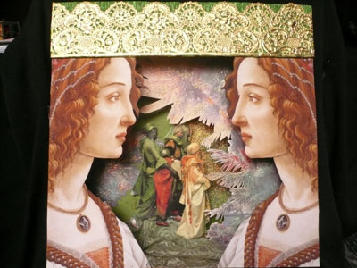 It has drop-down form of accordion with a small hole in the front that lets you view in the interior (with an incredible depth of three-dimensional effect) the entrance to the exhibition of that year.